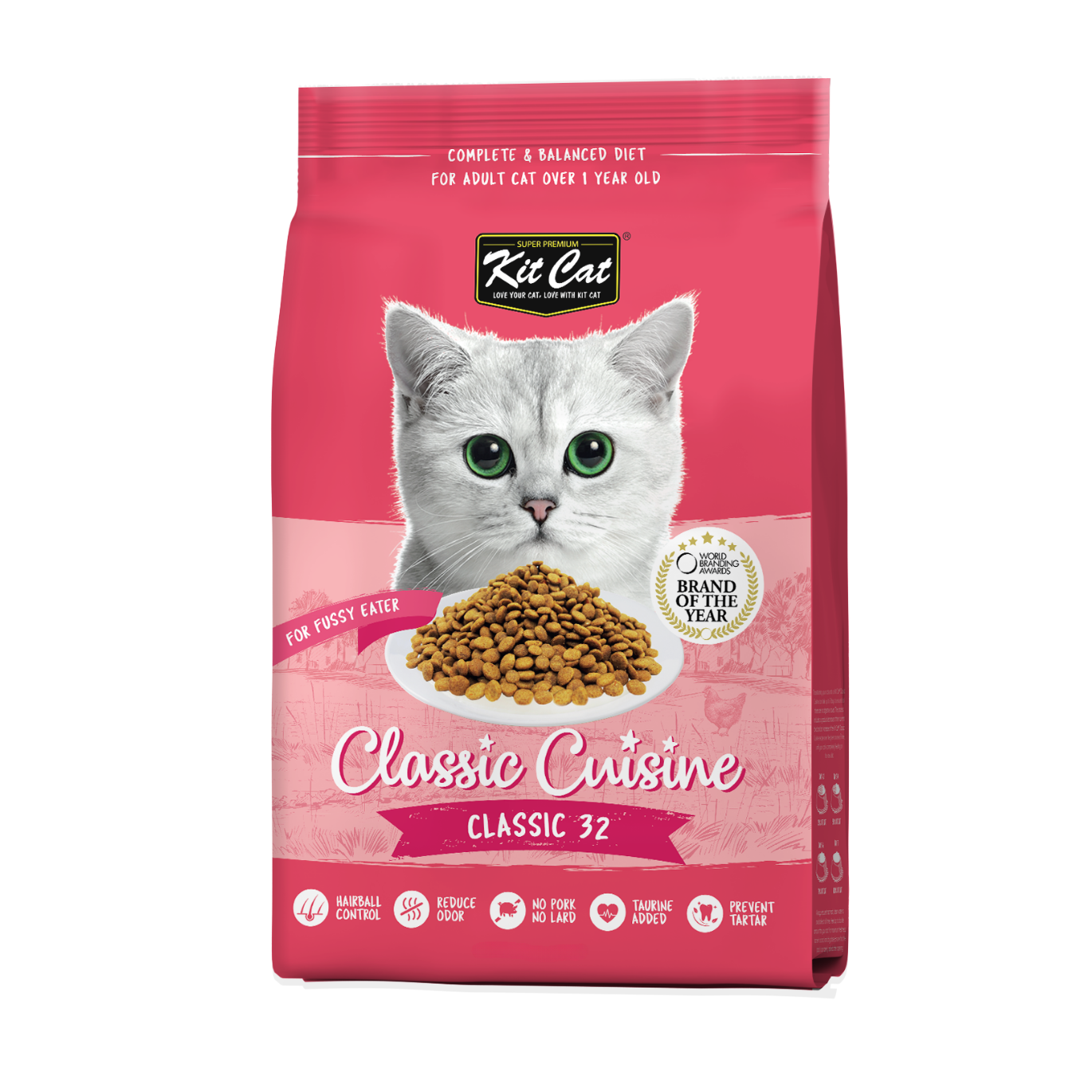 Kit Cat Classic 32 is a specially formulated dry cat food designed to support the unique nutritional needs of adult cats. It’s high protein content, using selected quality meat, promotes lean muscle development and a healthy weight. The recipe is enriched with ingredients that contribute to a balanced diet and ensures optimal digestion and absorption of nutrients. With added Omega-3 and Omega-6 fatty acids, and a blend of vitamins and minerals, Kit Classic 32 helps promote a strong immune system, healthy skin, and a shiny coat. The addition of Taurine, an essential amino acid, also provides several health benefits which include supporting a healthy heart function and aiding in the development and function of the retina. With its delicious taste and precisely balance formula, the Kit Cat Classic 32 is an ideal choice for keeping your adult cat healthy, active, and thriving.