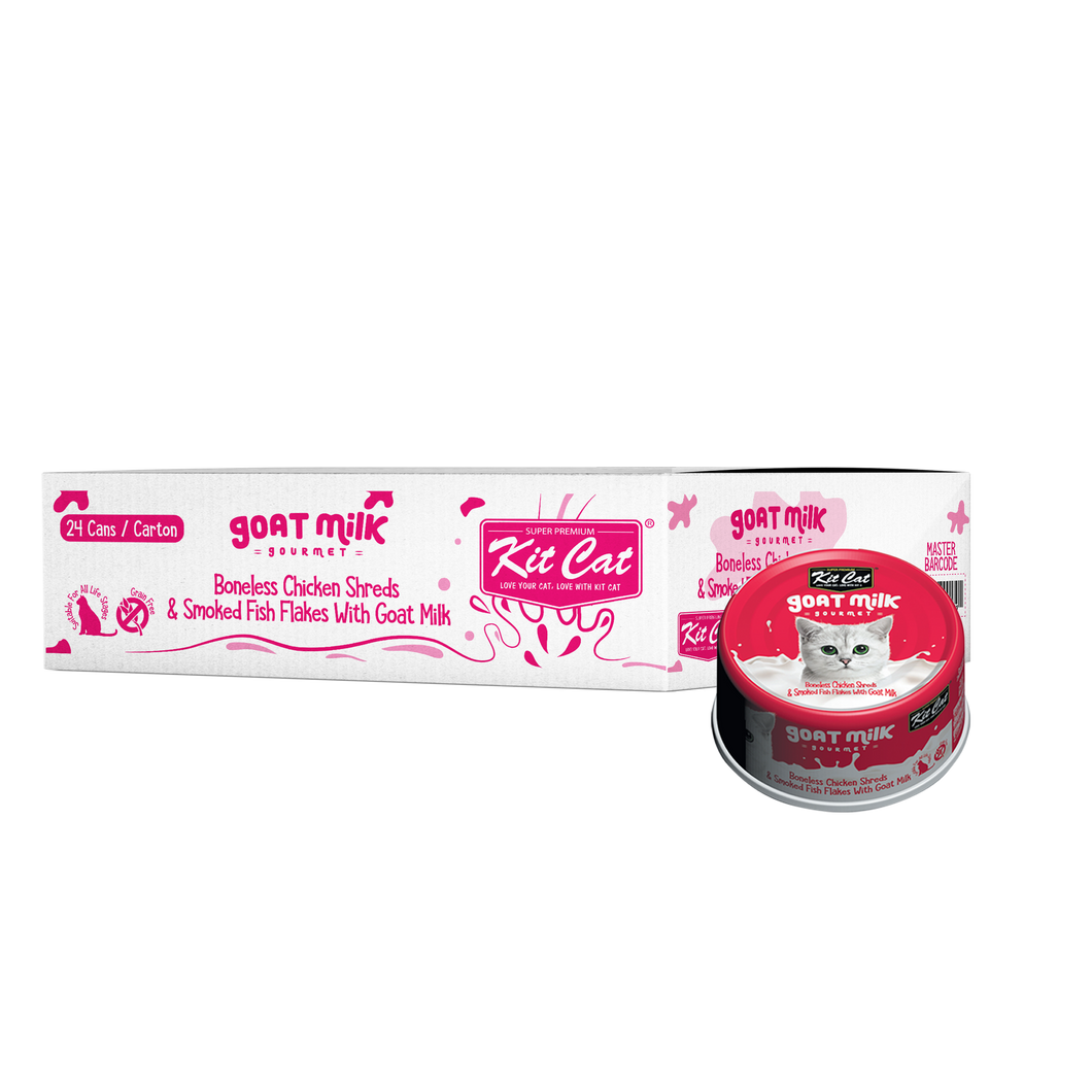 Kit Cat Goat’s Milk Gourmet is a protein-rich recipe, using selected quality deboned, skinless chicken and fish. Each portion is completely free of grains and gluten and features goat’s milk, which acts as a metabolic agent, boosting absorption and utilisation of vitamins and minerals, while reducing intestinal inflammation and boosting the immune system.