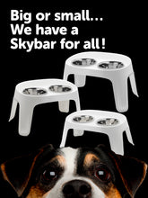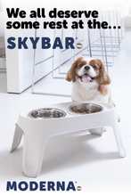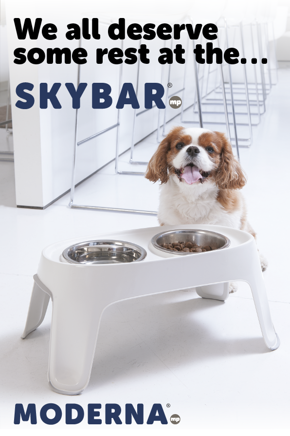 The Moderna Skybar Elevated Dog Bowl is a raised dog bowl stand that will allow your furry friend to eat comfortably without straining his neck, shoulders, back, and hips. The stand features a simple sleek design that will be more likely to match some of your other decor and the handles on either side make it easier to transport, should you need to relocate it for any reason.