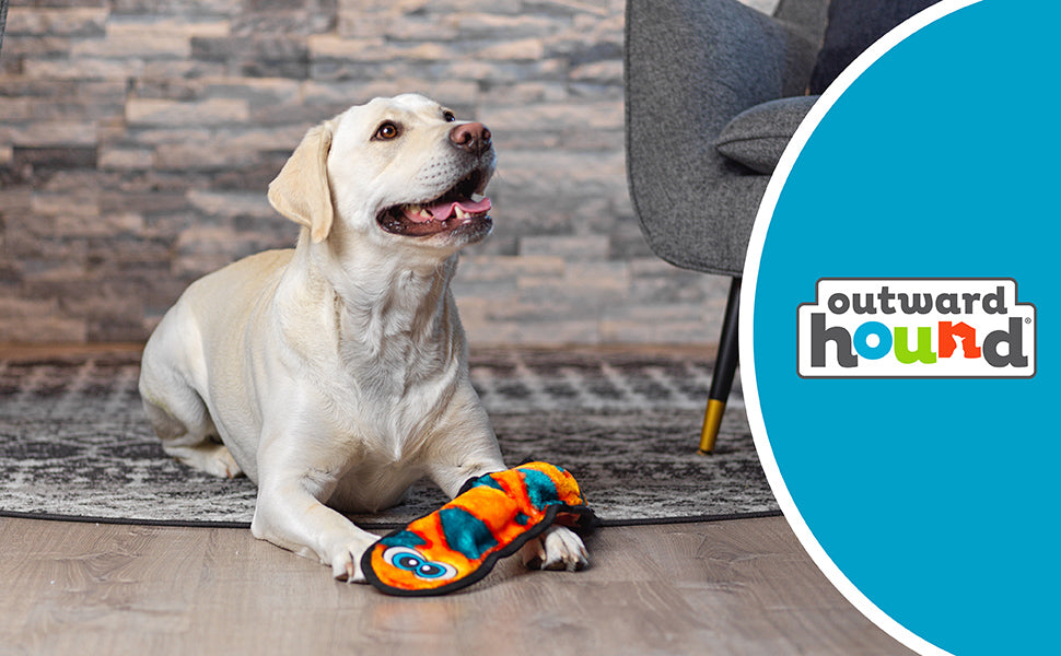 Outward Hound's Durablez range combines cuteness and toughness, offering plush dog toys designed to withstand energetic play while providing a cuddly experience. Made using K-9 TUFF GUARD technology, these toys feature heavy-duty binding and a robust interior layer, ensuring they withstand enthusiastic play. Their stuffing-free design eliminates messy cleanup, while engaging jumbo squeakers keep dogs entertained. Available in various shapes and sizes, Durablez toys cater to different breeds, activity levels, and squeaker preferences, making them perfect for fetch, toss, and cuddle time. Choose Durablez for the ultimate blend of fun and lasting play for your furry friends!