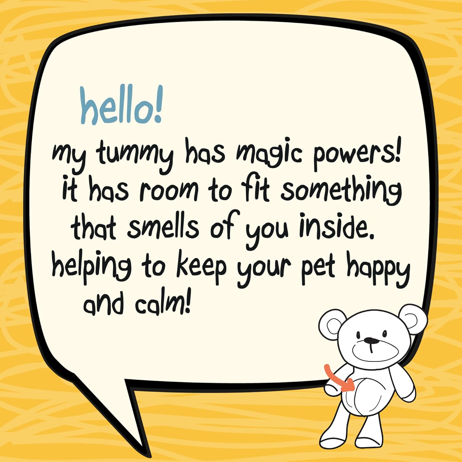 - CUSTOMISABLE SCENT: Stuff the tummy with a personal item that carries scent to offer familiar comfort to your dog; featuring a flat tummy with Velcro closure for easy insertion and removal of items