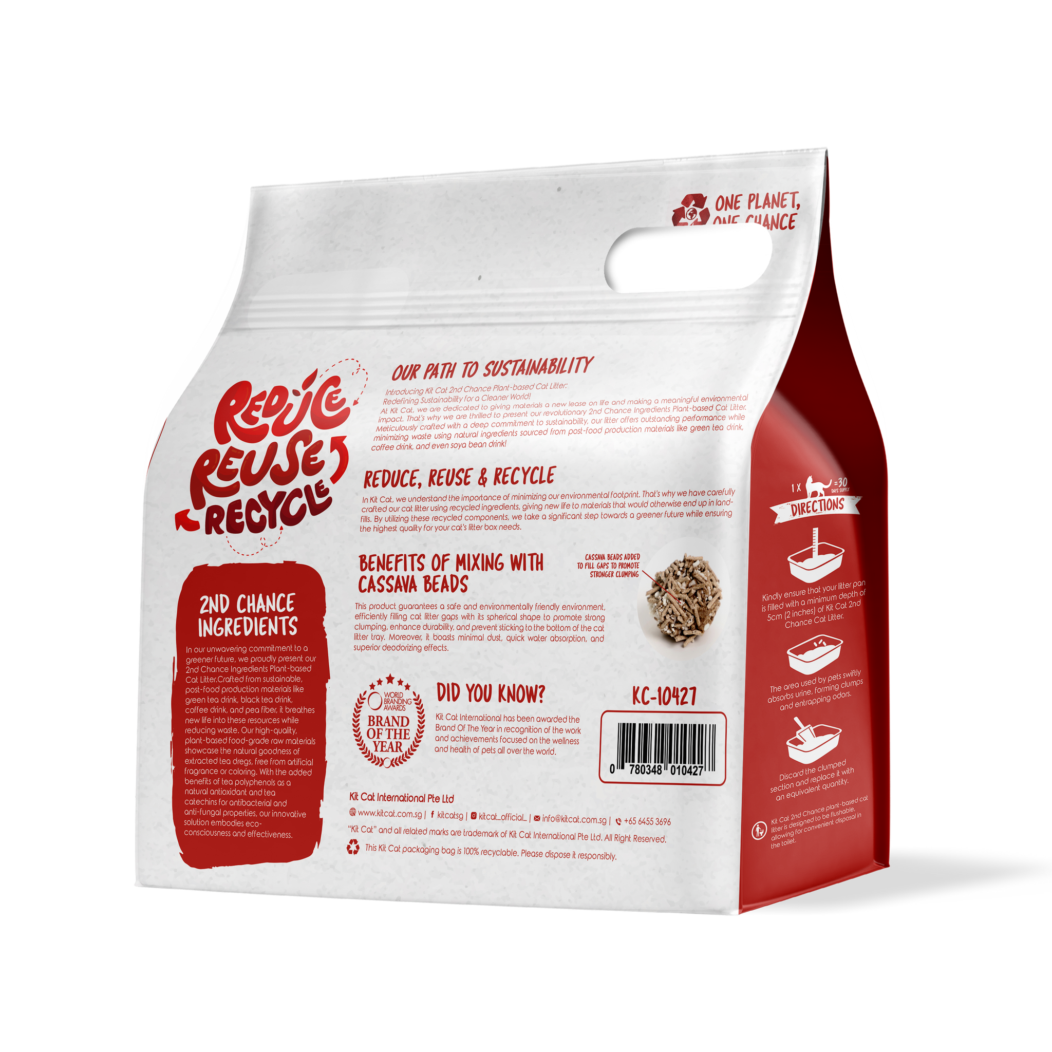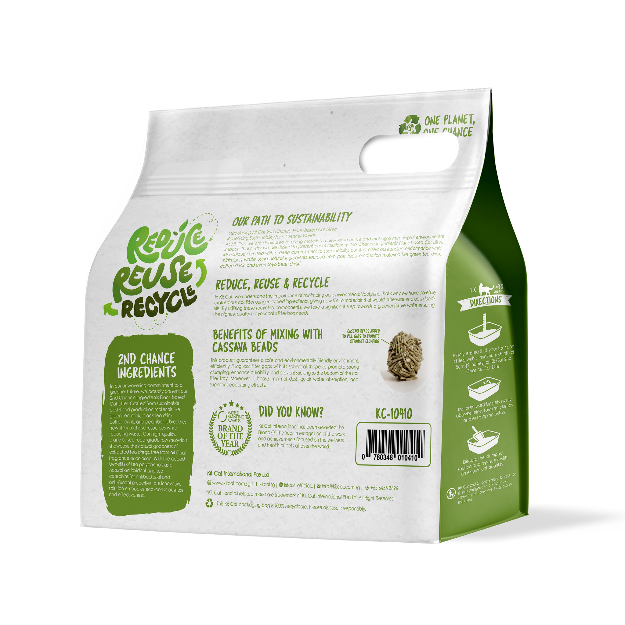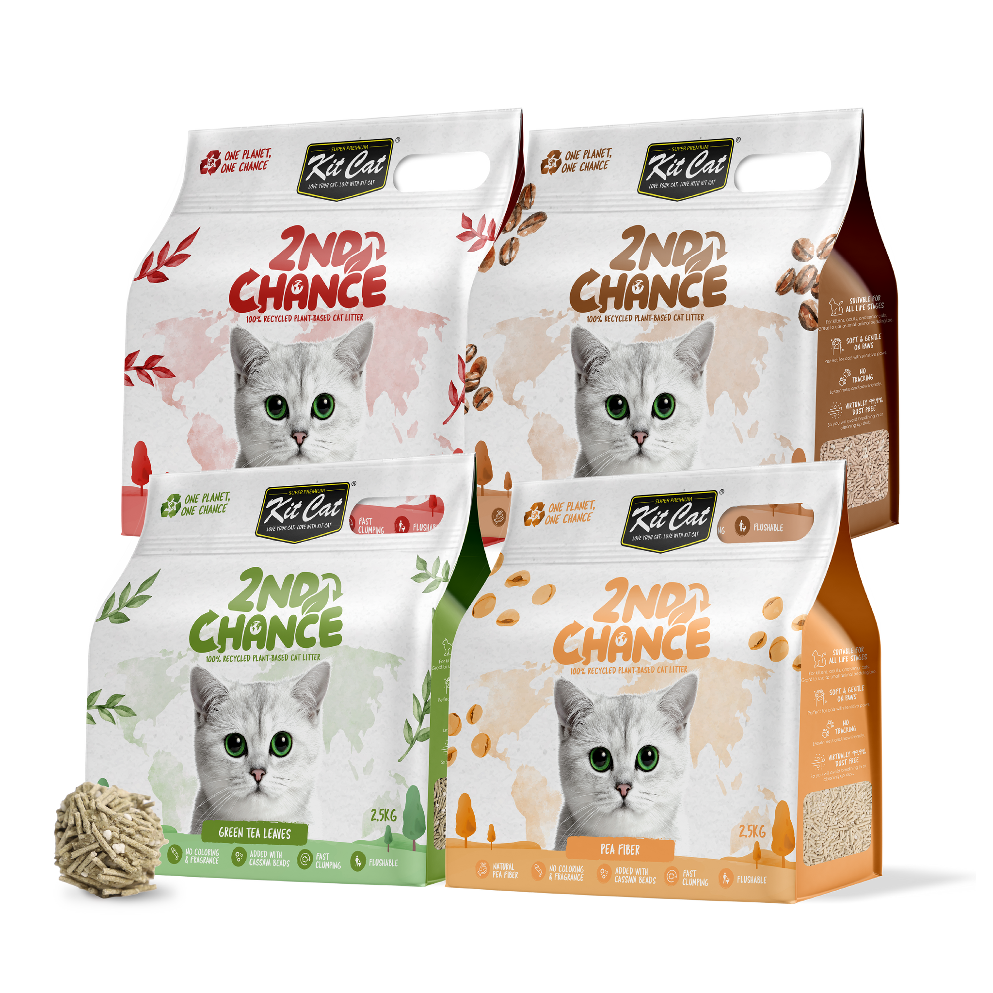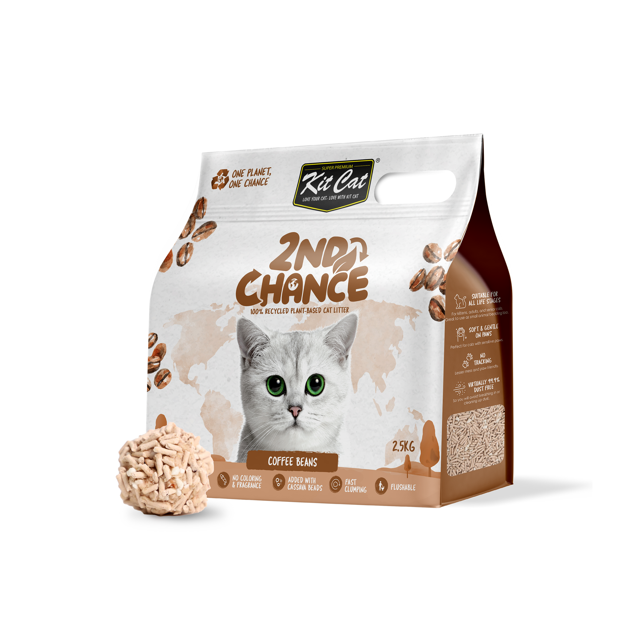 Kit Cat 2ND Chance Plant-Based Cat Litter redefines sustainability for a cleaner world. Made from recycled plant-based ingredients such as green tea, coffee, soybean by-products, pea fibre, and tea dregs, this innovative litter delivers exceptional performance while reducing waste. Suitable for cats of all life stages, it is soft on paws, virtually dust-free, and designed to minimise tracking for a cleaner home.