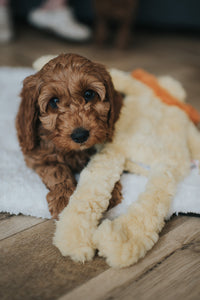 MyDog Luxury Plush Toys are designed for dogs of all ages, making them suitable for puppies, rescues, and dogs experiencing separation anxiety. These toys feature a unique tummy compartment that can be filled with scent-carrying materials, offering your pet comforting familiarity. Each toy includes a squeaker and is stuffing-free to minimize mess, while still providing space to stuff personal items.