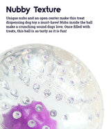 Give your dog the joy of double the fun with the Petstages Nubbiez Treat & Squeak Ball!