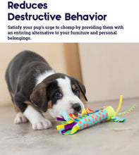 - SOOTHES ACHY GUMS: The bright cotton-poly fabric shell and stuffed interior of this chew toy means you can simply soak the chew toy in water and place in the freezer before giving to your pup for a gentle, soothing treat.