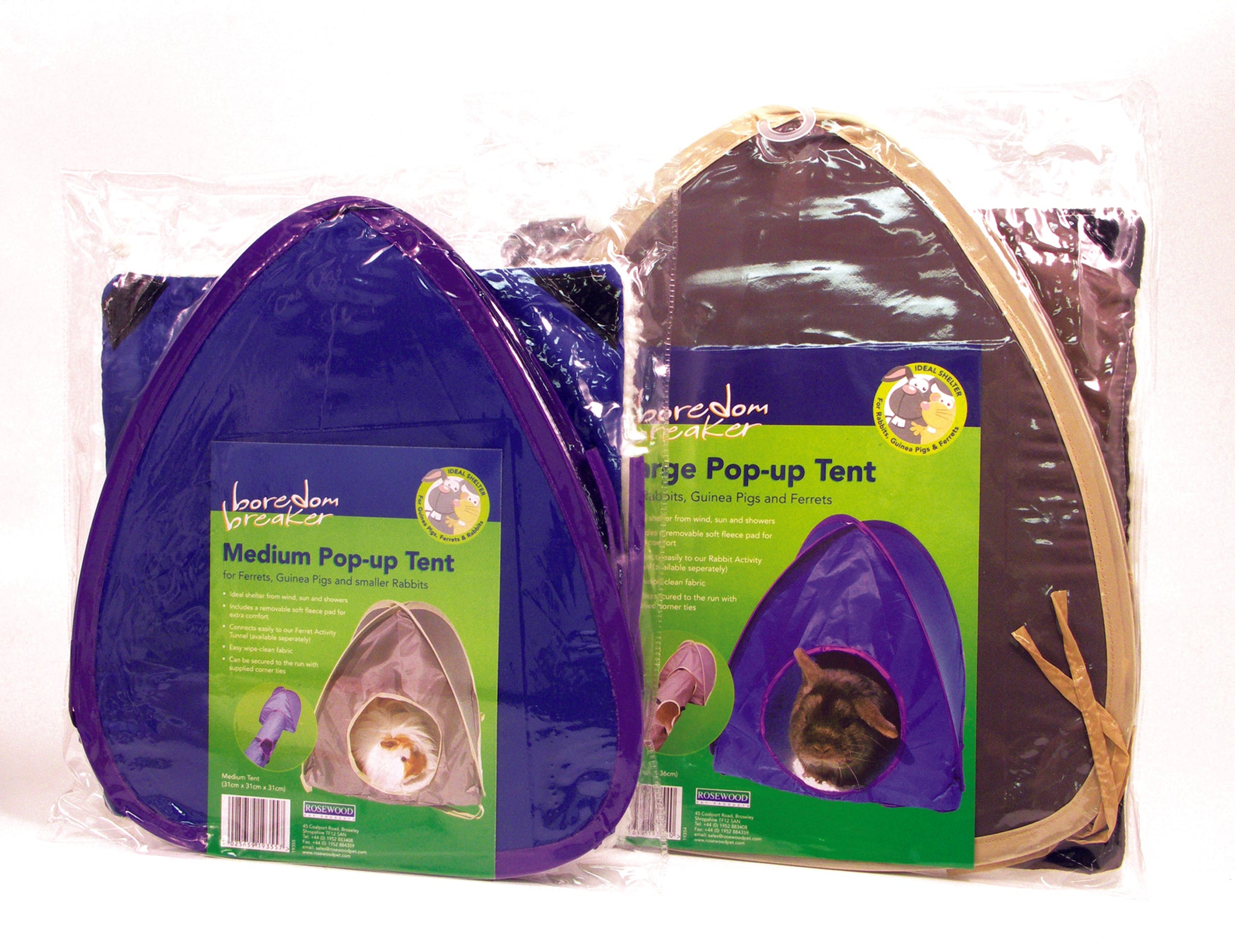Pop-up, wipe clean fabric tents which allow pets shelter from the sun, wind and rain when in a run. The Tent comprises a fleecy and washable inner lining which is easily attachable via velcro, making removing the lining effortless. The structure is rigid enough to withstand most weather, whilst being simple to assemble and collapse for storage. So appealing you’ll want to climb in too!