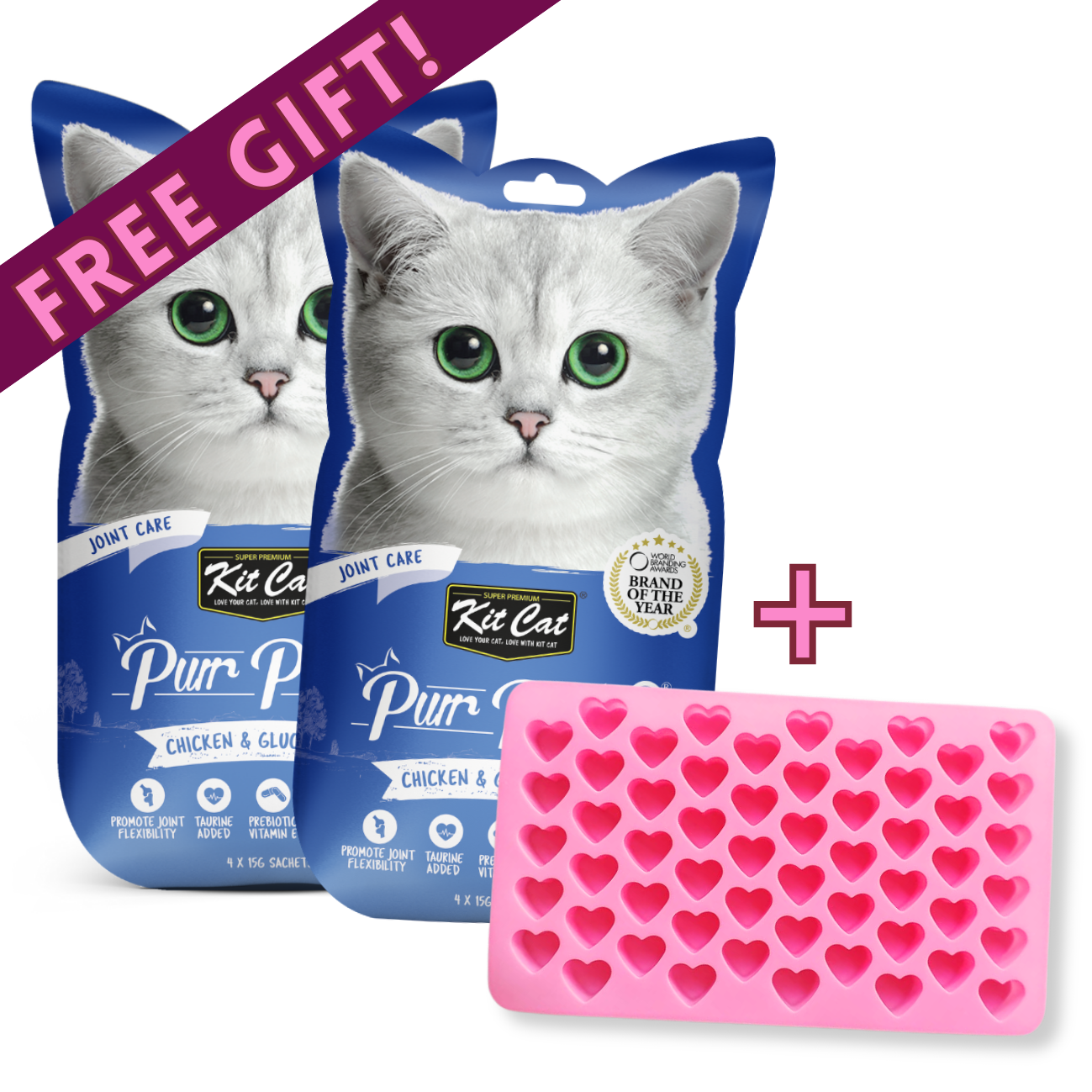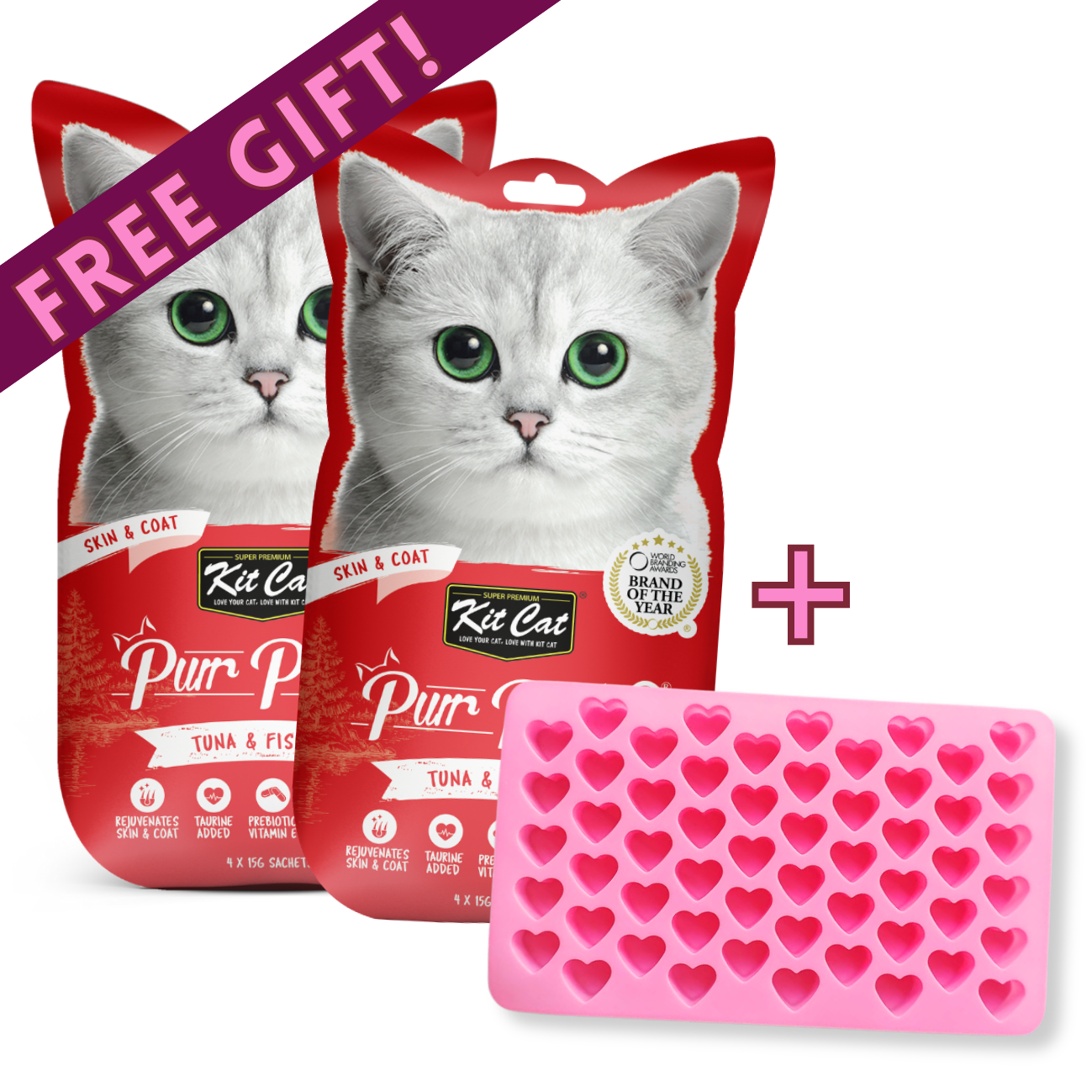 To make the month of love even sweeter, customers will receive a limited edition Valentine’s silicone heart mould FREE with the purchase of any 2 Kit Cat Purr Puree Plus+ packs.