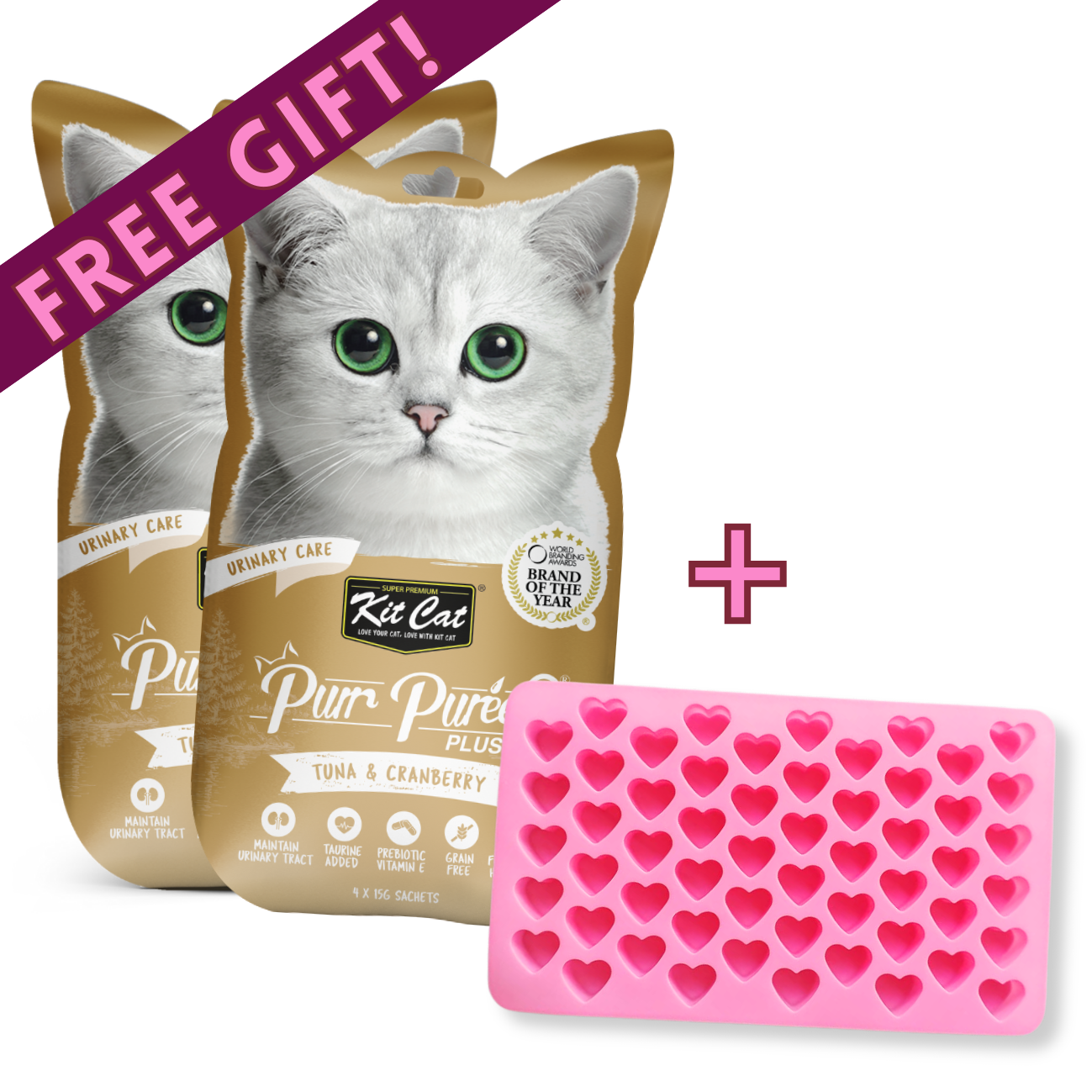 Buy 2 x Purr Puree Plus+ (4 x 15g) of the same variant and Get a FREE Silicone Heart Treat Tray
