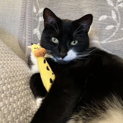 Our Eco Friendly Giraffe Grab Toy will be the perfect companion for your cat - whether it's for play time or snuggle time! Watch as your kitty grabs, pounces at and bats around house, being engaged all day (there is added catnip inside to add to this even more!) Not only are you treating your pet, but you're also giving plastic a second life.