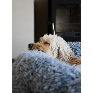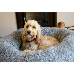 This Silver Fluff Comfort Bed offers ultimate comfort for our pets, featuring super soft faux fur that is self-warming and soothing. The raised edges create a sense of security and provide head and neck support, making it a perfect snuggling spot for your furry friends.